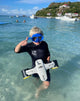 A SEABOB + SEAWING COMBO is a special package created to make it possible to have younger (<10yo) and older kids (>10yo) together in the water on an, age adapted, electric sea propulsor during 30 mins.